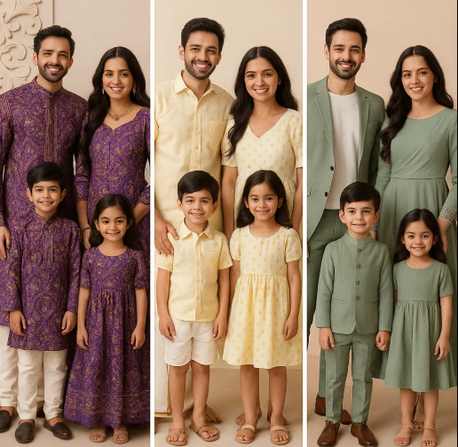 In particular, family matching outfits are now common at marriages, naming ceremonies, birthdays, and even casual meetings. They create unforgettable memories, look incredible in photoshoots, and add a sense of unity to every event.