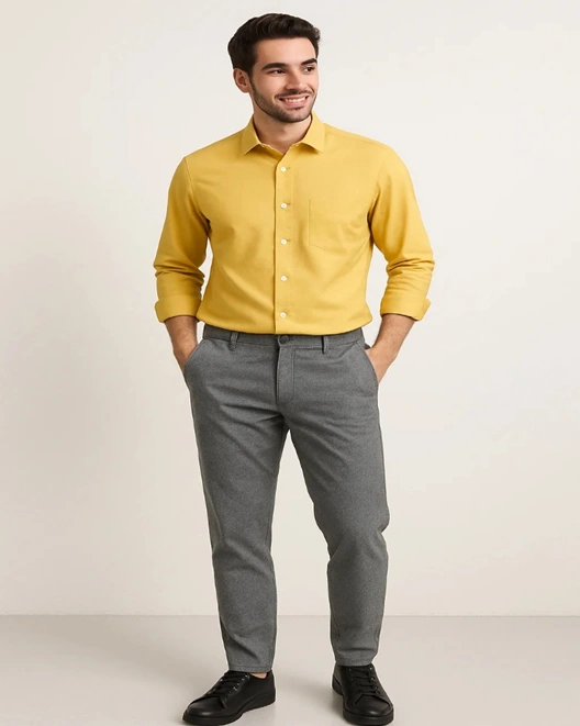 - Mustard Yellow Shirt Combination:Â Perfect for semi-formal and festive wear.